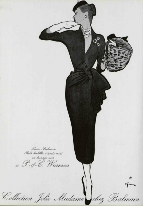 He preserved the house’s key aesthetic codes: architectural structure, rich ornamentation, and especially the iconic “Jolie Madame” silhouette — Balmain’s signature hourglass shape combining elegance with daring femininity.